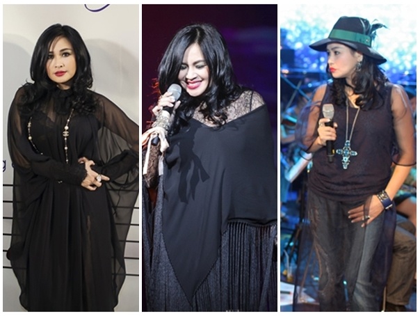 | Dẫn đầu nhóm mỹ nhân mặc xấu nhất tháng 9, ca sĩ Thanh Lam sở hữu 3 bộ trang phục tông màu đen, có đường nét rườm rà cùng cách mix rối mắt. Không chỉ vậy, thiết kế nhiều tầng lớp còn khiến ngoại hình vốn đầy đặn của nữ ca sĩ trở nên kém thanh thoát và nặng nề. |