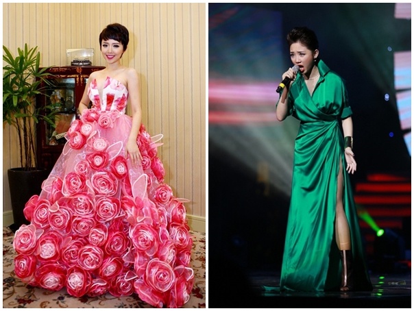 | Dù được đánh cao về gu thời trang gợi cảm, sành điệu, ca sĩ Hoàng Thùy Linh cũng từng nhận phải lời chê bai vì trang phục lỗi mốt, không nhanh nhạy xu hướng. Trong ảnh, người đẹp diện hai bộ váy có nhiều chi tiết thừa thãi không cần thiết sau lưng áo. Trang phục thiếu sự đầu tư khiến cô nhận phải những điểm trừ về gu thẩm mỹ. |