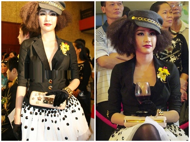 | Ngân Khánh từng khiến người hâm mộ thất vọng khi diện bộ trang phục sao chép phong cách của Phạm Băng Băng dự sự kiện giải trí năm 2012. Bộ cánh màu mè bởi nhiều điểm nhấn thừa thãi cùng kiểu tóc xù ngắn khiến cô trở thành phiên bản sao chép bị hỏng của nàng Hoa đán Trung Quốc. |