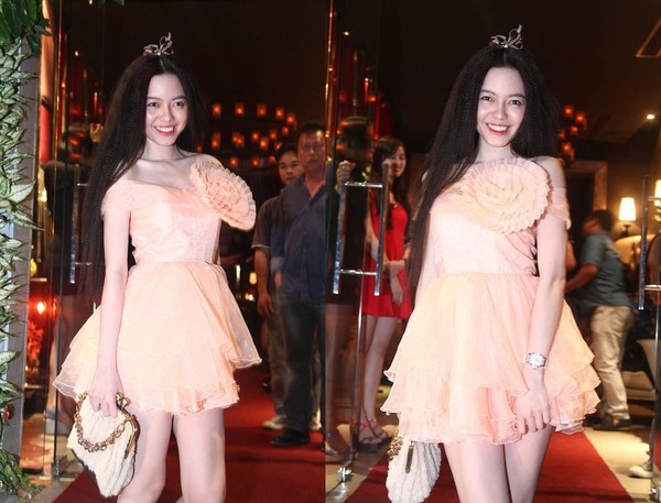 | khuôn mặt cùng thân hình gợi cảm của Vũ Hoàng Điệp không hề hợp với style "công chúa" quá đà như thế này. |