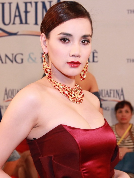 | Ở trên sàn diễn hay ngoài đời, Ngọc Quyên đều chuộng những bộ cánh khoét sâu phần ngực. |
