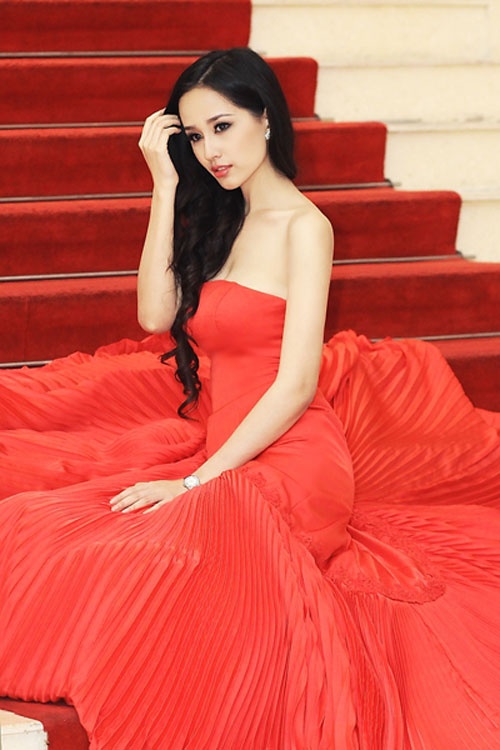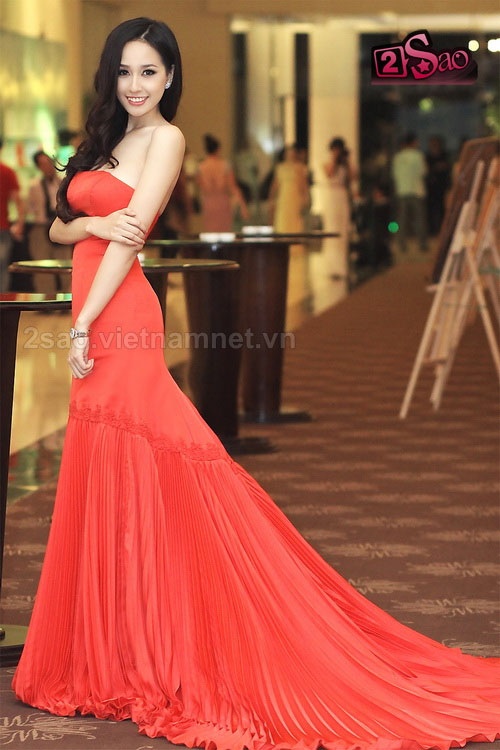 | Mai Phương Thuý tự tin khoe đôi chân dài miên man cùng vòng 1 săn chắc trong chiếc váy đỏ xẻ sâu ngực và xẻ đùi. |