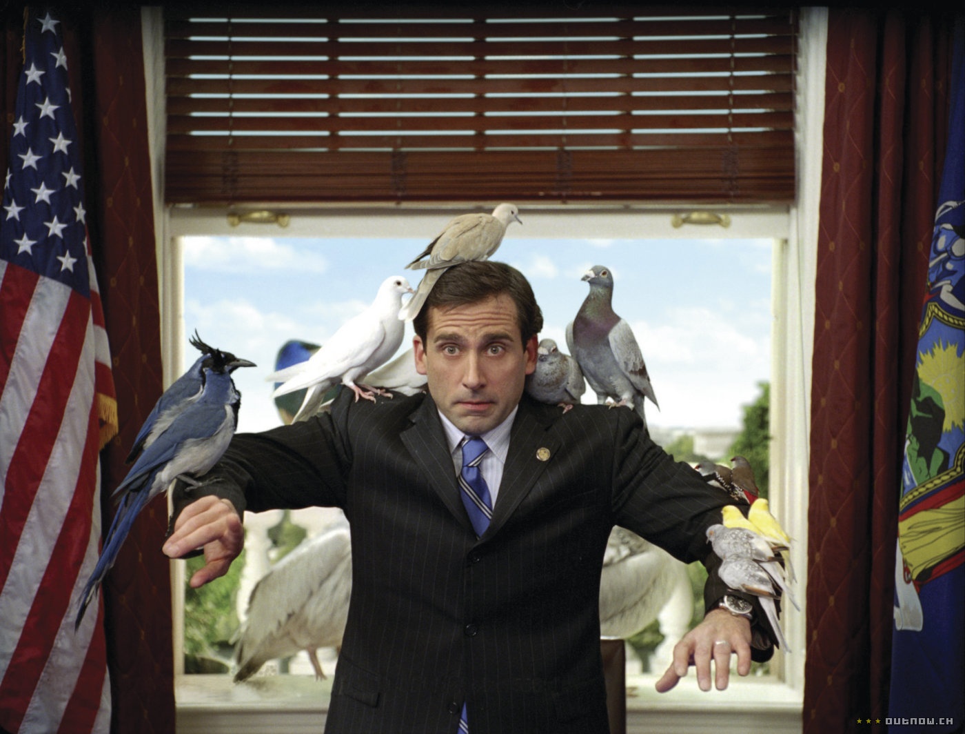 Bruce Almighty (2003) và Evan Almighty (2007): Tuy nhân vật chính trong Bruce Almighty là Bruce của Jim Carrey thì nhân vật phản diện, gã phóng viên gàn dở và kiêu căng Evan Baxter của Steve Carell vẫn có được một số lượng người hâm mộ đáng kể. Sự hâm mộ này lớn tới mức vào năm 2007, hãng Universal tiếp tục cho ra đời một phần phim ăn theo về nhân vật này mang tựa đề Evan Almighty. Trong phim, Chúa quyết định chuyển giao quyền năng cho Evan Baxter và giúp anh này nhận ra nhiều sai lầm của cuộc đời mình. |