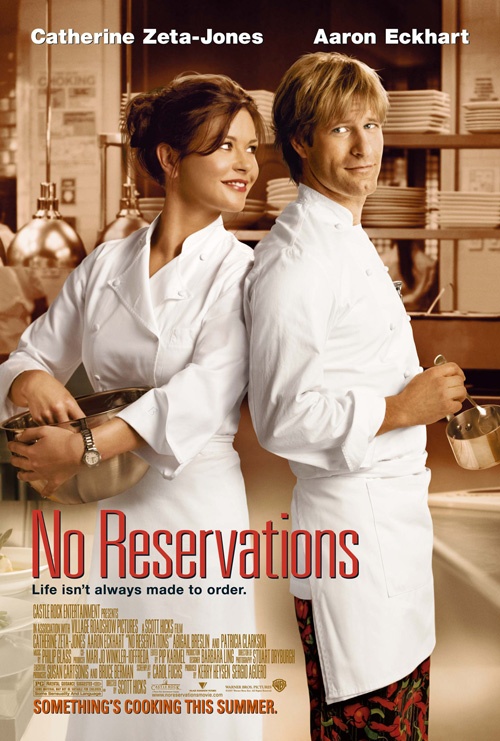 | No Reservations (2007) Phía sau công việc bếp núc không phải lúc nào cũng bắt đầu bằng những câu chuyện vui. Với No Reservations, đây là một ví dụ rất rõ ràng. Kate, một nữ đầu bếp tài năng, lạnh lùng và cực kỳ tinh tế. Làm việc trong một nhà hàng danh tiếng bậc nhất Manhattan với cường độ công việc khủng khiếp nhưng Kate vẫn khẳng định mình là nữ hoàng của căn bếp. Số phận trớ trêu khi người em gái của cô đã mất do tai nạn xe hơi một cách đột ngột để lại Zoe, cô con gái mới 10 tuổi cho Kate chăm sóc. Áp lực công việc và trách nhiệm gia đình kiến cuộc sống của nữ bếp trưởng dần đi vào bế tắc và đã đến lúc cô cần phải tìm một phụ bếp hỗ trợ mình. |