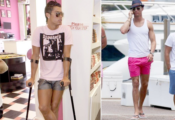 Không hổ danh là "Ro điệu" tuy nhiên, màu hồng trong trường hợp này không phát huy tác dụng với Cristiano Ronaldo. Chiếc áo Dsquared kết hợp với chiếc quần đùi bóng, dáng ôm và thậm chí là chiếc quần hồng rực rỡ ở bên trái chỉ làm cho Ronaldo mất đi vẻ đàn ông vốn có.