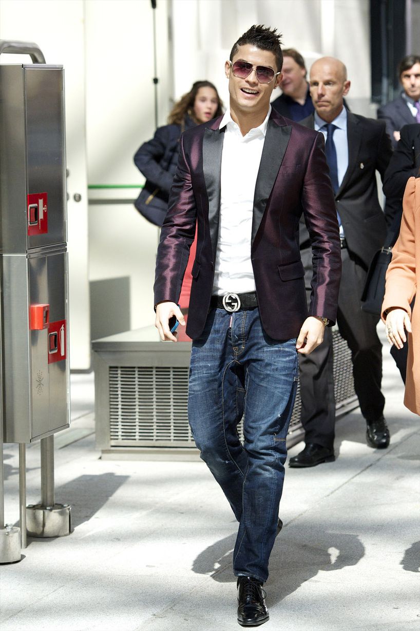 Suit và jeans không phải là thứ không thể kết hợp nhưng với Ronaldo thì đúng là bộ trang phục này chẳng ăn nhập với nhau.