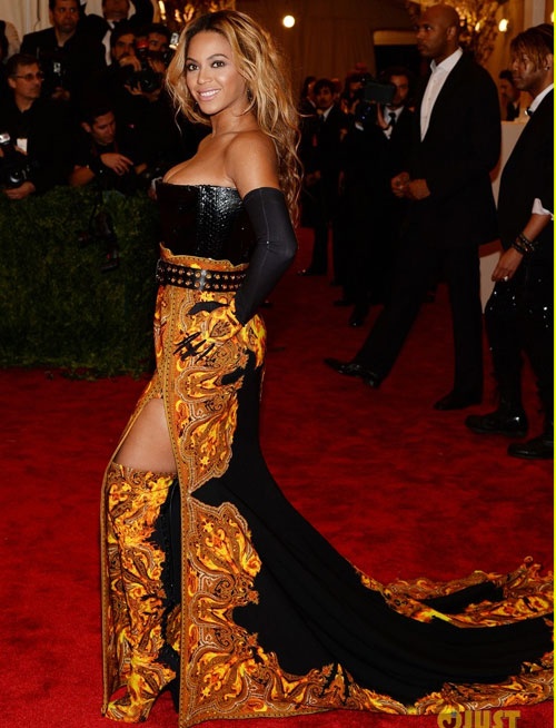 | Beyonce bị ví là chiếc thảm trải sàn lòe loẹt và bức mắt khi tham dự Met Gala 2013. |