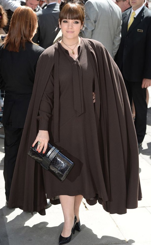 | Không ai hiểu vì sao nữ ca sĩ Lily Ailen lại mặc như một bà phù thủy già đi dự sự kiện hoàng tráng. |