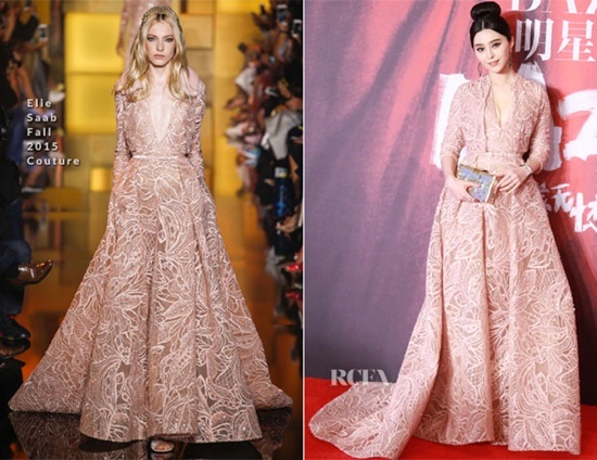 Elie Saab là một trong những thương hiệu rất được Phạm Băng Băng ưu ái. Chiếc váy ren màu hồng nhạt này là một trong số những thiết kế của hãng thời trang danh tiếng được người đẹp mặc tham dự sự kiện. |