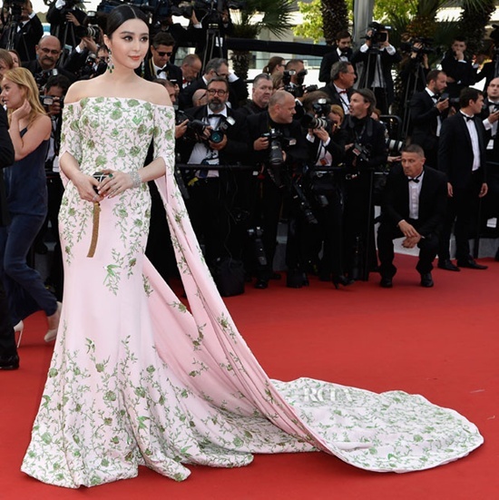 Xuất hiện tại LHP Cannes lần thứ 68, Phạm Băng Băng "đánh cắp" mọi ánh nhìn khi diện bộ váy trắng hở vai gợi cảm của Ralph & Russo. |