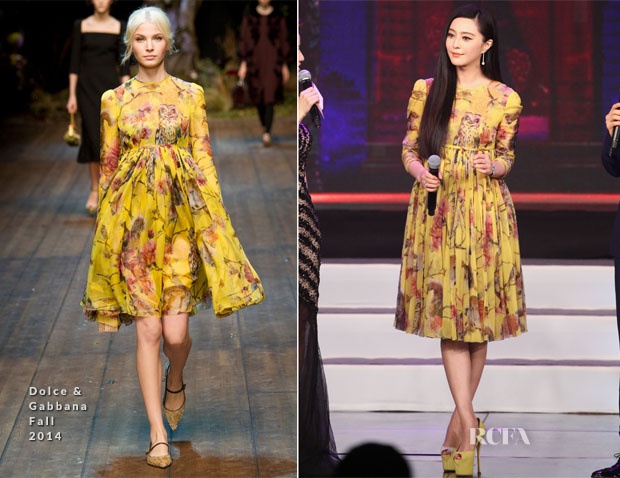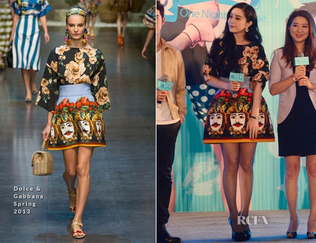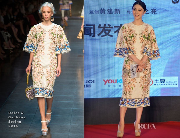 | Đầm hoa văn Dolce Gabbana được Phạm Băng Băng mix khéo léo cùng giày đồng bộ để tạo điểm nhấn hơn. |