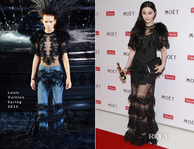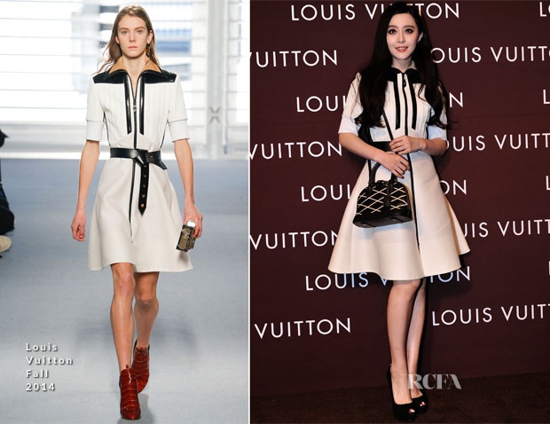 | Sự thay đổi với giày và túi xách giúp cho bộ cánh LV của Phạm Băng Băng thu hút hơn hẳn người mẫu. |