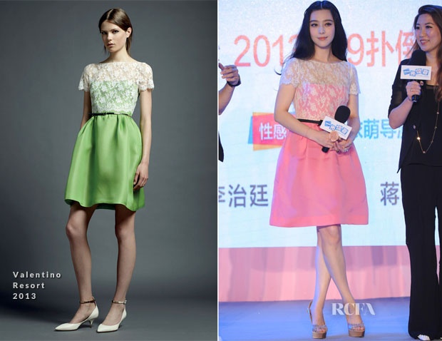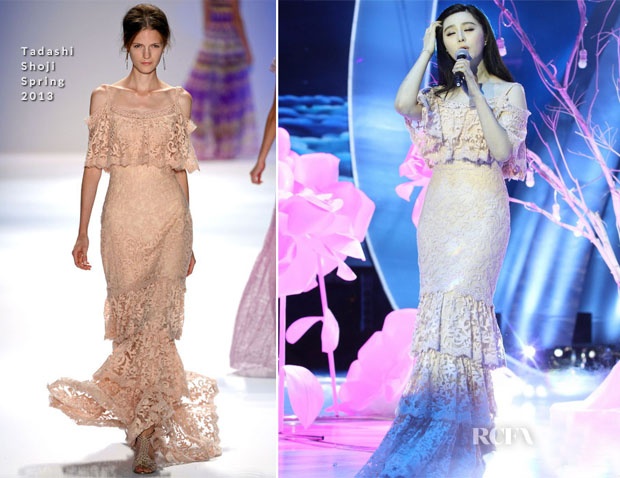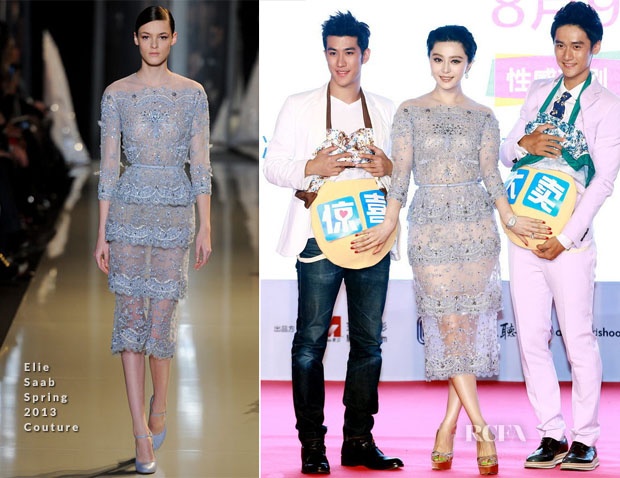 | Mẫu váy ren trong suốt rất phù hợp với làn da và vóc dáng của Phạm Băng Băng. |