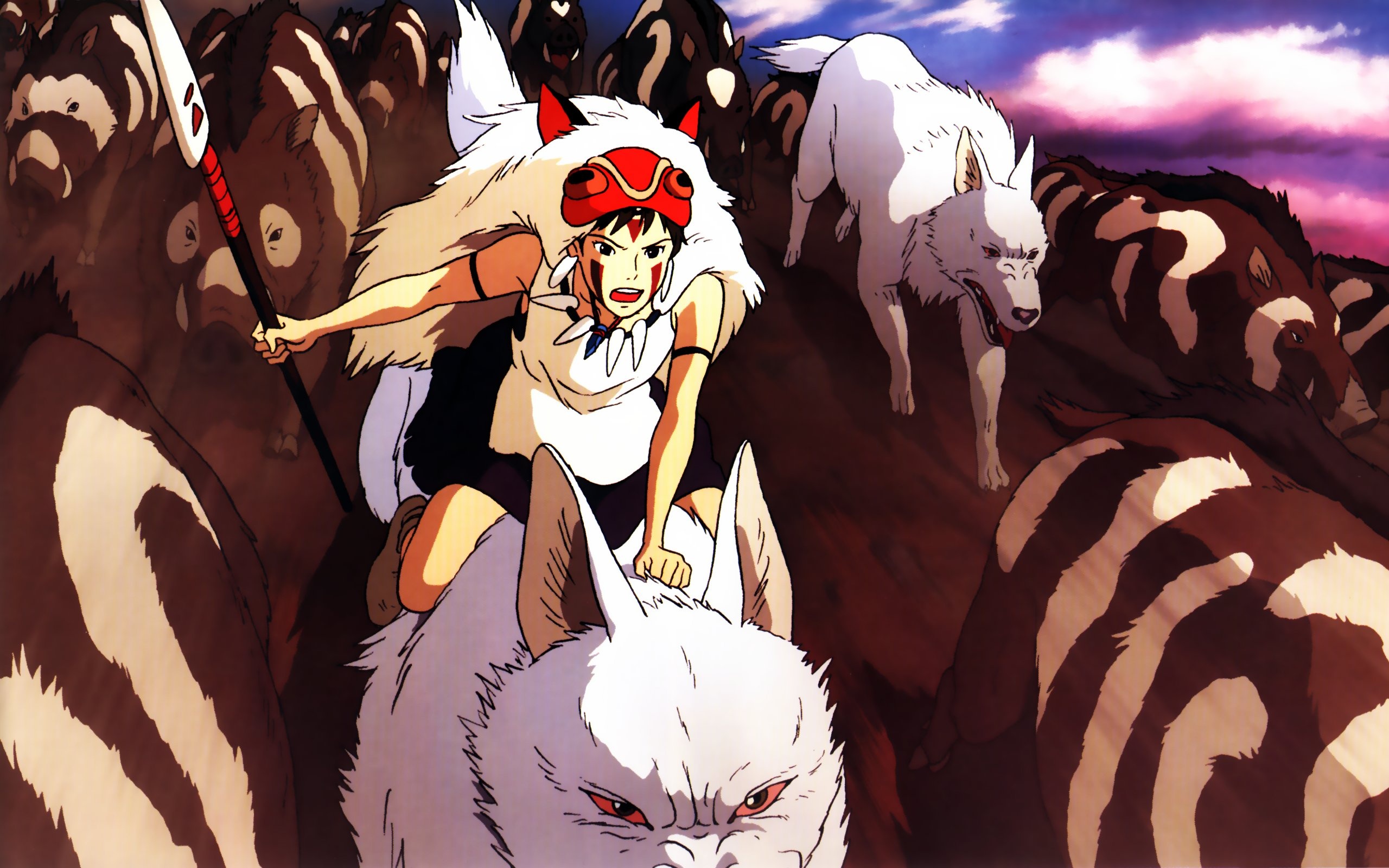 Princess Mononoke (1997): Trong lúc chiến đấu bảo vệ ngôi làng của bộ tộc Emoshi khỏi sự tấn công của Tatari Gami/vua lợn rừng Nago, hoàng tử Ashitaka dính phải lời nguyền độc địa từ Nago. Theo lời chỉ dẫn của bề trên, Ashitaka tìm đến vùng rừng núi phía Tây để hóa giải lời nguyền. Tại đây, anh gặp gỡ Eboshi, một người phụ nữ can trường và bản lĩnh, lãnh đạo bộ lạc dùng quyết tâm cải tạo và chống lại những thế lực của tự nhiên; tiếp sau đó là công chúa Mononoke, một cô gái trẻ dũng cảm và hoang dại, được nuôi dạy bởi thần sói trắng Moro. Từ đó, Ashitaka vô tình vướng vào cuộc xung đột của hai người phụ nữ vốn không đội trời chung hay đúng hơn là cuộc chiến giữa con người và thế lực siêu nhiên. |