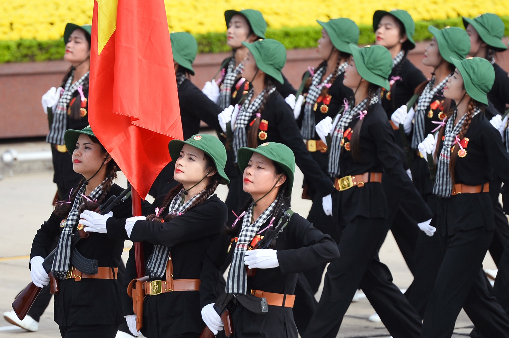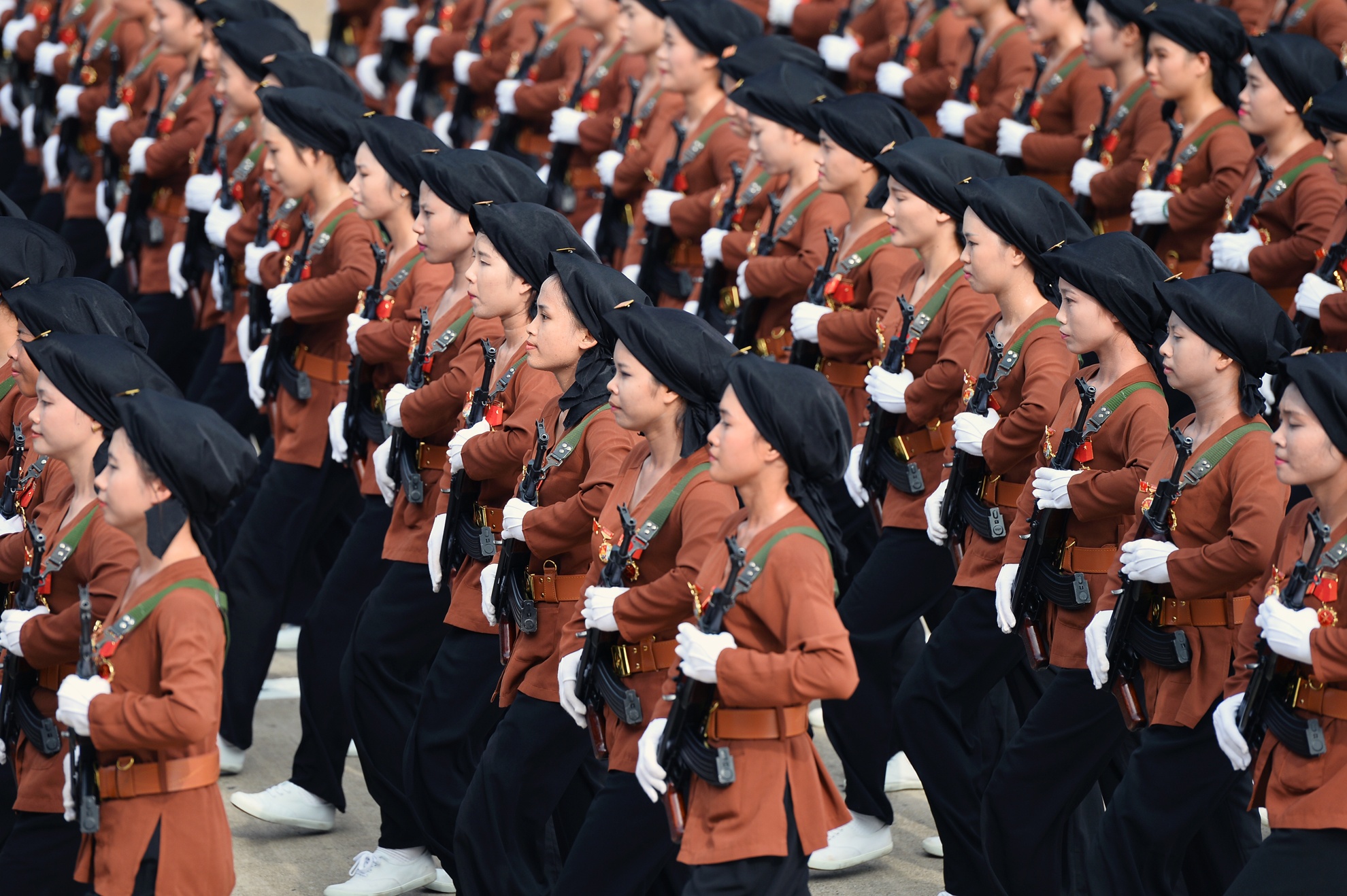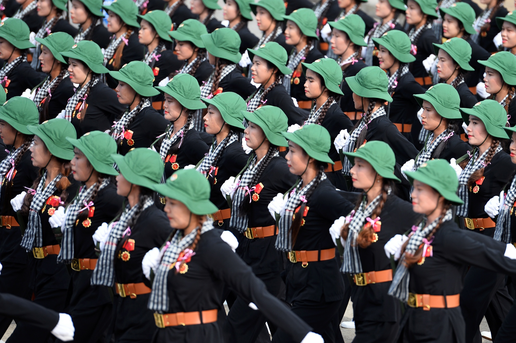 Phần diễu binh, diễu hành tại lễ mít-tinh 70 năm Quốc khánh Việt Nam cuốn hút hơn bởi sự xuất hiện của các cô gái trong màu áo lính và nhiều người đẹp thuộc khối đoàn thể.