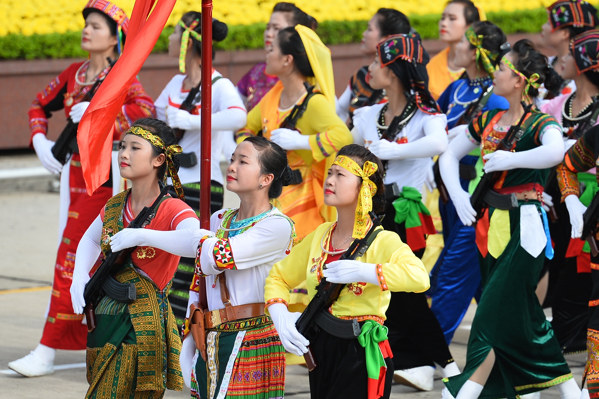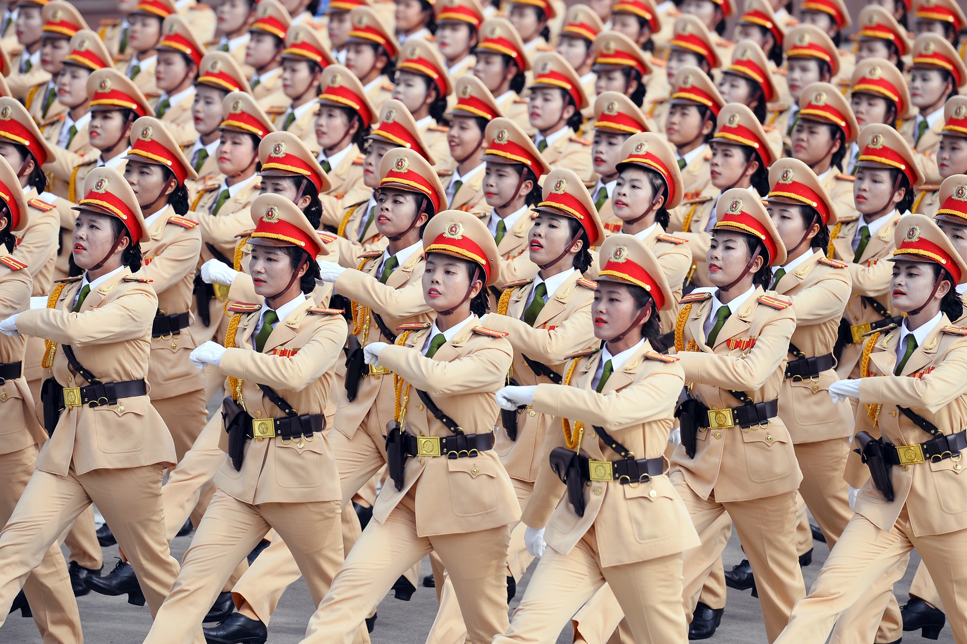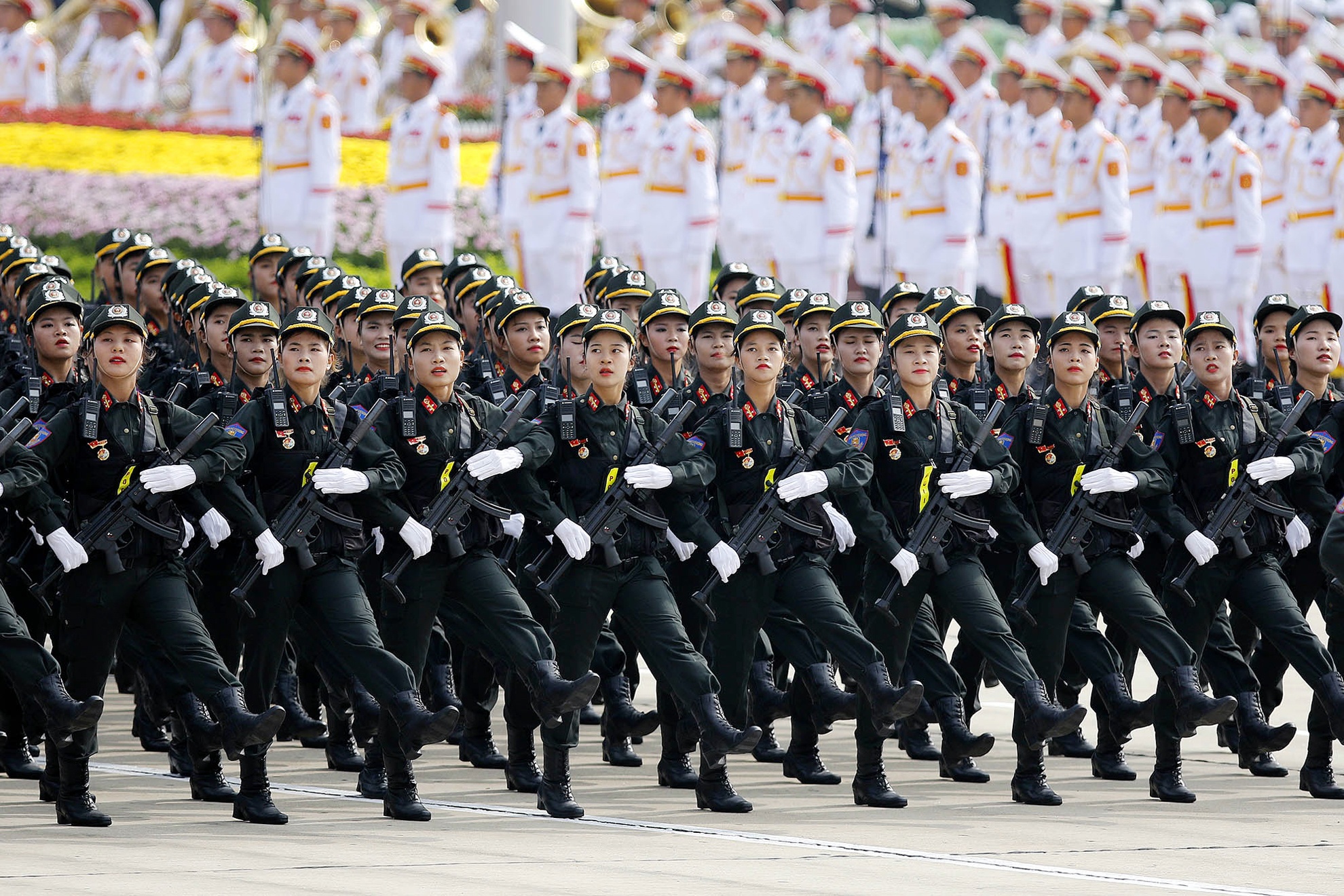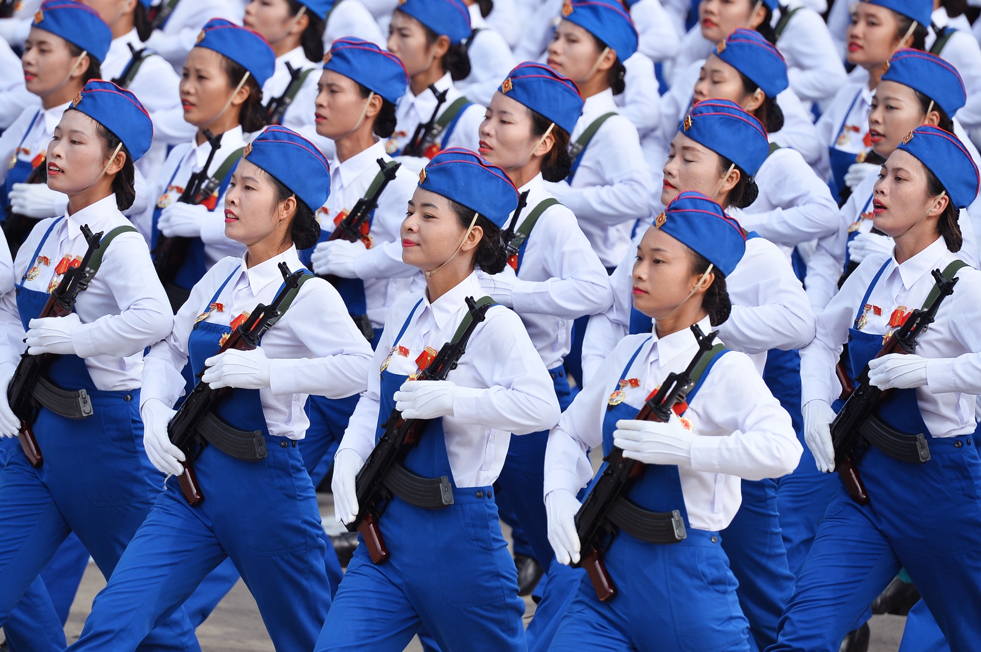 Phần diễu binh, diễu hành tại lễ mít-tinh 70 năm Quốc khánh Việt Nam cuốn hút hơn bởi sự xuất hiện của các cô gái trong màu áo lính và nhiều người đẹp thuộc khối đoàn thể.
