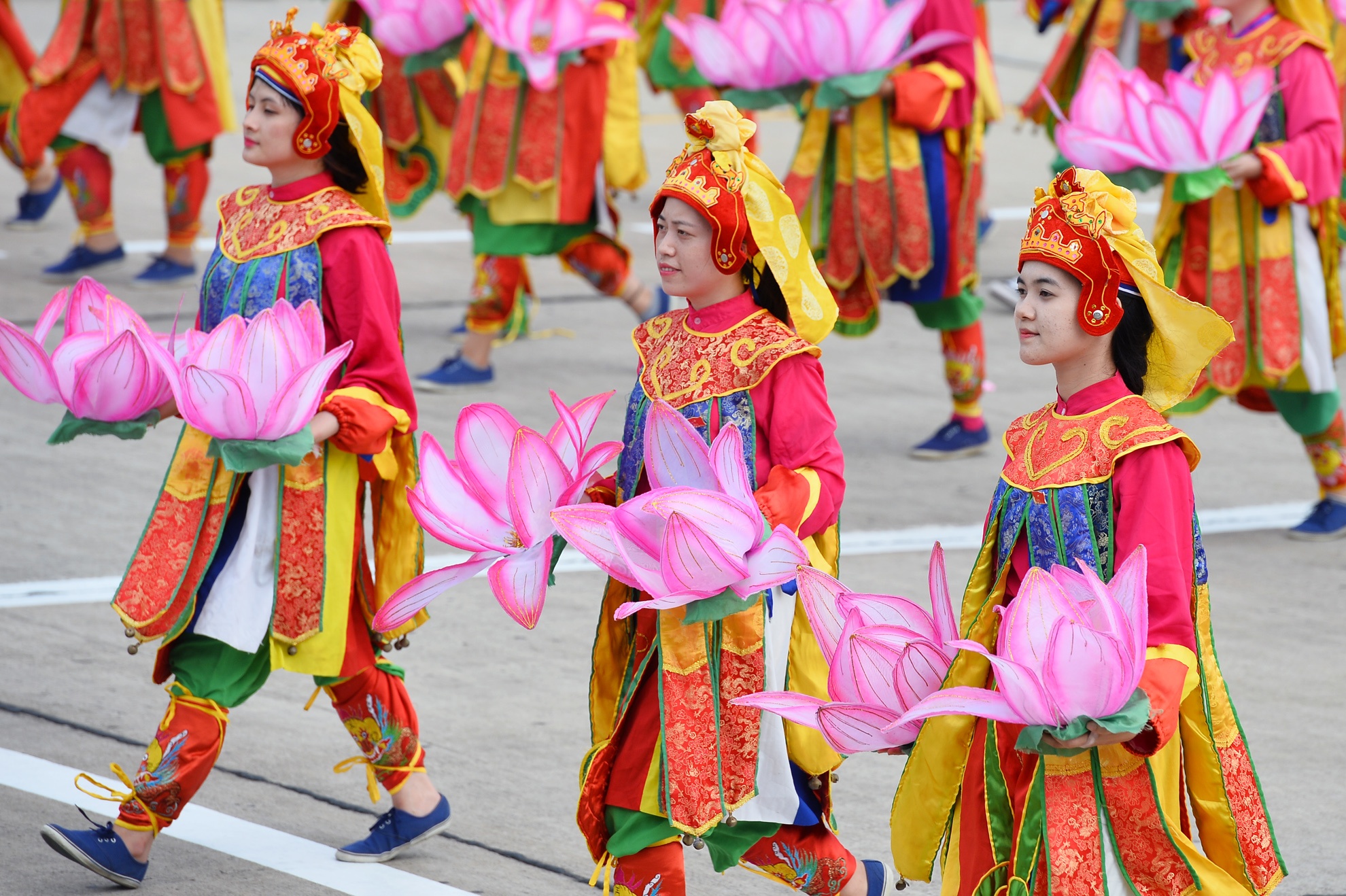Các khối diễu hành gồm có: đại diện cho 54 dân tộc anh em, công nhân, nông dân, trí thức, doanh nhân, phụ nữ Việt Nam và thanh niên Việt Nam.