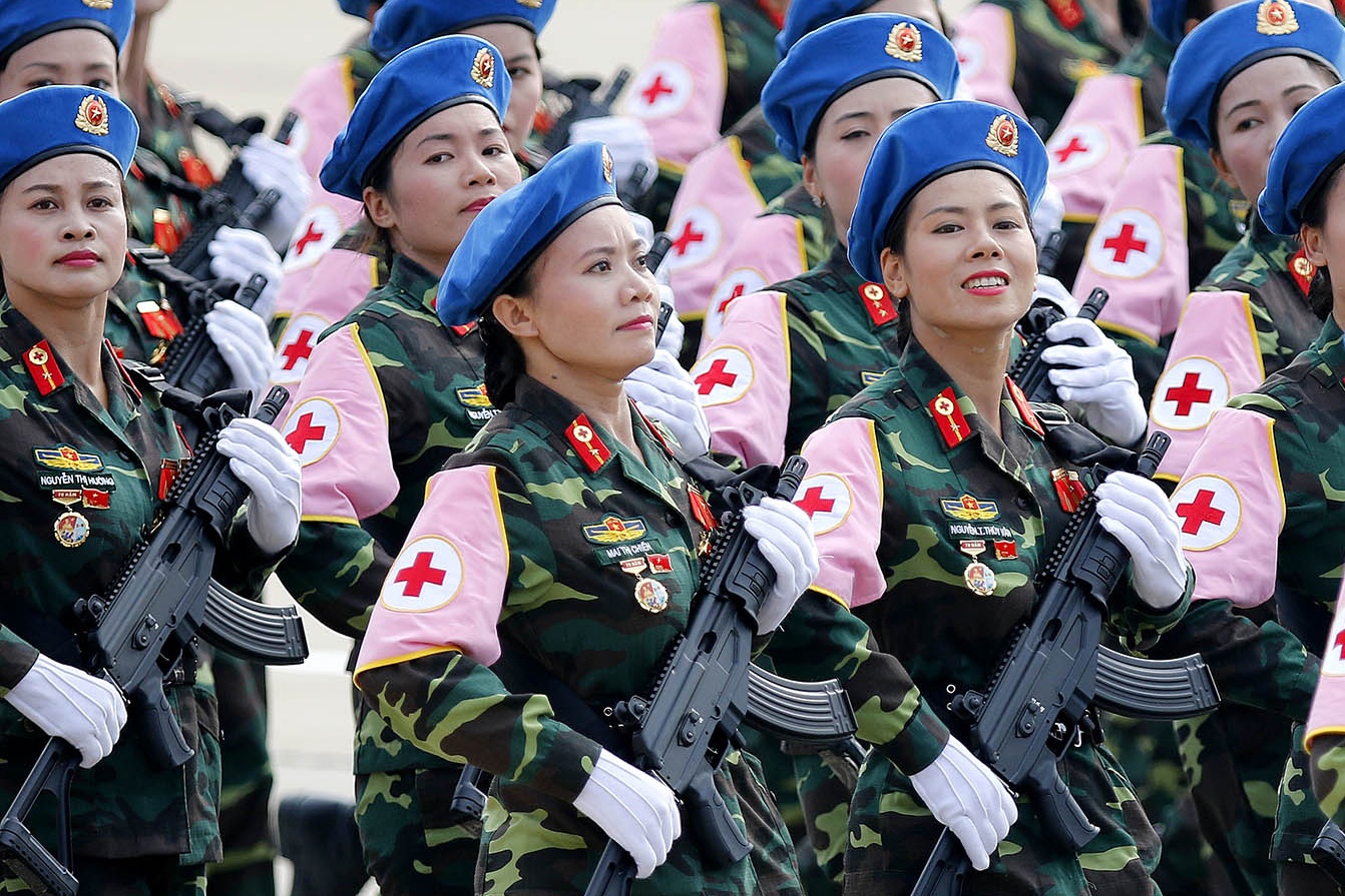 Lực lượng nữ quân y diễu binh qua lễ đài tại Quảng trường Ba Đình.