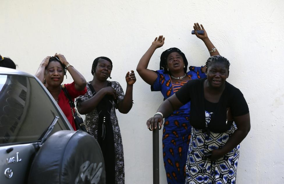 | Những người phụ nữ than khóc khi các nạn nhân một vụ nổ bom được đưa tới bệnh viên đa khoa Asokoro tại thành phố Abuja, Nigeria. Vụ việc xảy ra ngay vào giờ cao điểm tại một bến xe đông đúc gần thủ đô, khiến 71 người thiệt mạng. |