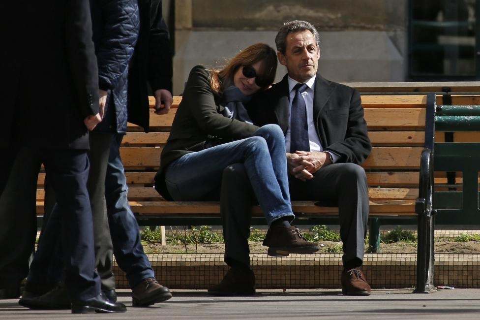 Cựu Tổng thống Pháp Nicolas Sarkozy ngồi cùng vợ, bà Carla Bruni-Sarkozy, tại thành phố Paris, Pháp vào một ngày tháng 3. Hai người đang ngồi đợi đến lượt bỏ phiếu ở điểm bầu cử đặt tại một trường học, trong cuộc bầu chọn ban lãnh đạo thành phố.