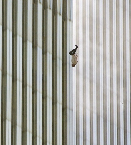| Phóng viên Richard Drew của hãng AP chụp bức ảnh Người đàn ông rơi gây chấn động thế giới trong vụ khủng bố 11/9 ở Mỹ. Nạn nhân là một trong những người mắc kẹt phải nhảy khỏi tháp đôi để tránh ngọn lửa và khói sau khi hai máy bay lao vào tòa nhà. Bức hình chụp tại Trung tâm Thương mại Thế giới ở thành phố New York vẫn còn ám ảnh hàng triệu người trên thế giới. Ảnh: AP |