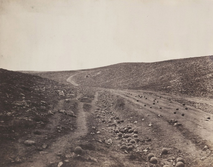 | Roger Fenton, người được coi là nhiếp ảnh gia chiến tranh đầu tiên, chụp bức ảnh các vỏ đạn đại bác nằm la liệt trên một cánh đồng cỏ cằn cỗi năm 1855. Hình ảnh "thung lũng tử thần" cho thấy sự tàn khốc của chiến tranh. Ảnh: Telegraph |