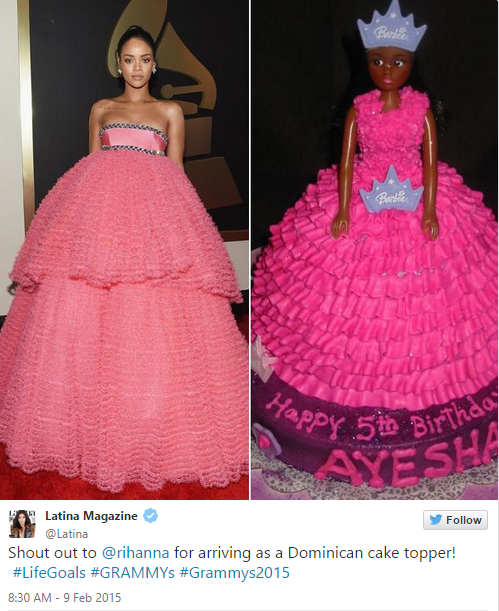 | Với bộ đầm hồng này Rihanna được ví như hình mẫu búp bê Barbie trên chiếc bánh mừng sinh nhật của một cô bé 5 tuổi. |