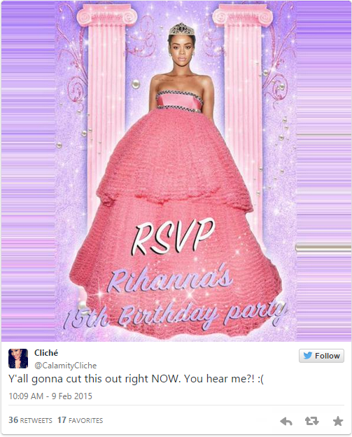 | Dù đã bước sang tuổi 26 nhưng với bộ trang phục dễ thương này Rihanna vẫn trông như một cô bé trong bữa tiệc sinh nhật kỉ niệm sinh nhật tuổi 15. |