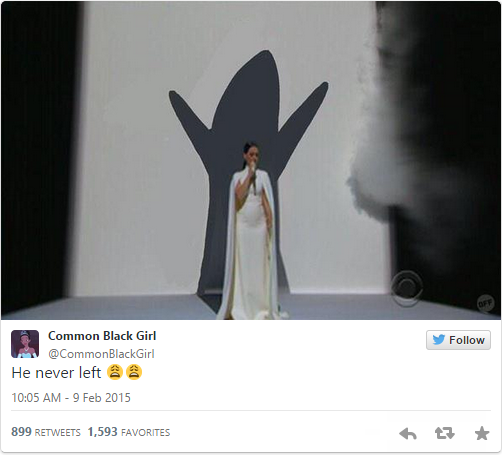 | Còn Katy Perry thì bị chế nhạo bởi cái bóng trong phần trình diễn ca khúc By the grace of God trên sân khấu Grammy 2015. |