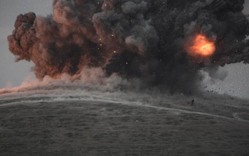 Một ngôi làng nằm trên núi Ontake, khu trượt tuyết nổi tiếng của Nhật Bản, bị xóa sổ vì tro núi lửa. Ảnh: Reuters |