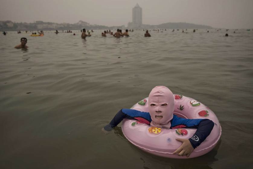 Đeo mặt nạ tắm biển là phương thức giải trí được nhiều phụ nữ Trung Quốc chọn lựa khi tới Thanh Đảo. Ảnh: Getty |