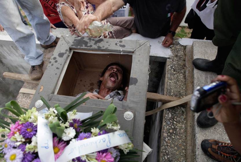 Người dân tham gia lễ hội giả chết thường niên ở Santiago de Las Vegas, Cuba hôm 5/2. Ảnh: AP |