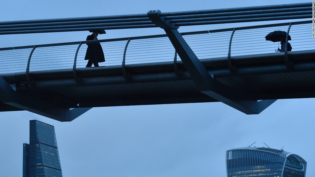 London, Anh: Người dân London đi qua Millennium, cầu bộ hành nối thánh đường St. Paul ở bờ bắc với phòng trưng bày nghệ thuật Tate Modern. |