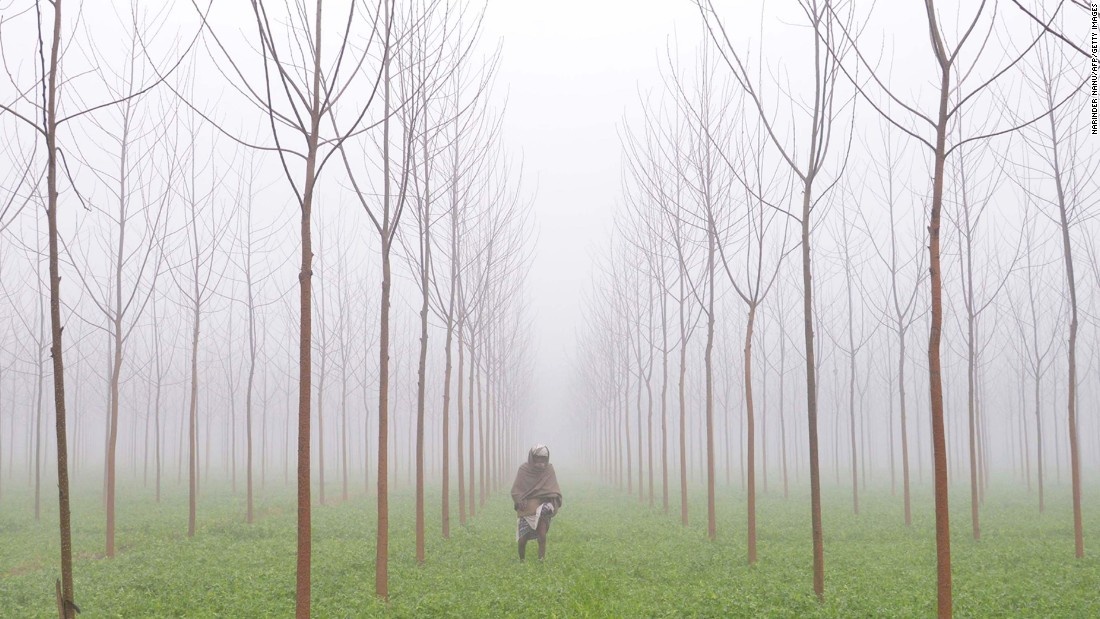 Amritsar, Ấn Độ: Một nông dân đi giữa khoảnh ruộng của mình ở ngoại ô Amritsar. Vào mùa đông, vùng này thường có sương mù, với nhiệt độ trung bình vào tháng 1 chỉ khoảng 5 độ C. |