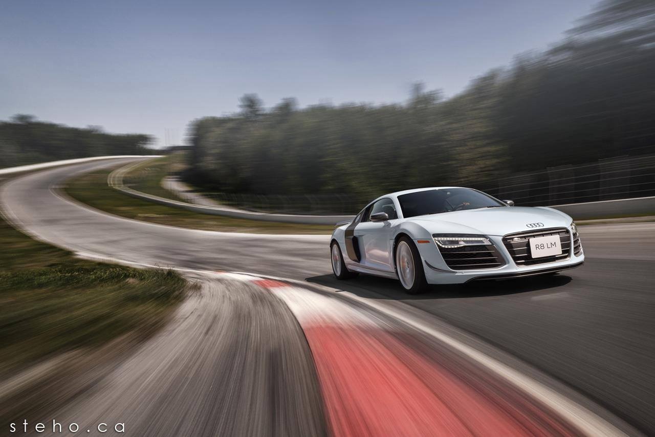 | Siêu xe Audi R8 LM xé gió trên đường đua. |