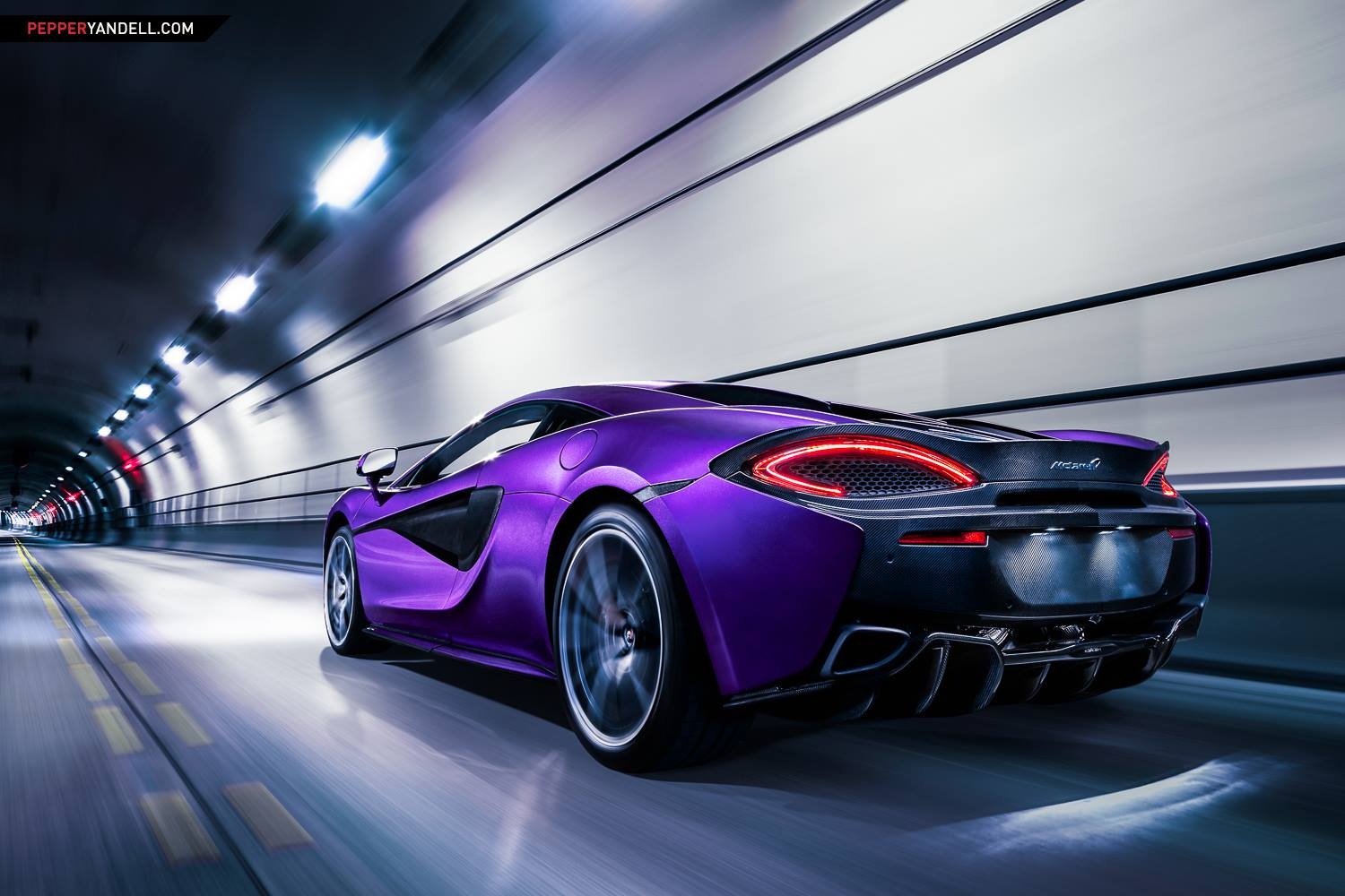 | McLaren 570S màu tím nổi bật càng cuốn hút với shoot hình chuyển động trong đường hầm. |
