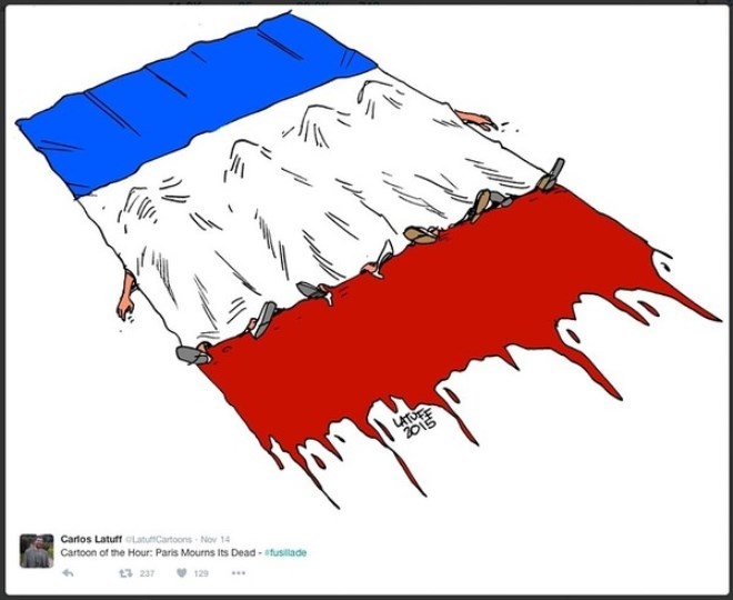| Tác phẩm Paris tang tóc do Carlos Latuf thực hiện được dân mạng đánh giá là đơn giản nhưng mang nhiều ý nghĩa. |