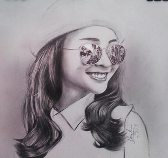 | Ảnh vẽ Khả Ngân của họa sĩ Trần Minh Thông sinh năm 1985, quê Đồng Hới, Quảng Bình, hiện làm việc tại TP.HCM. |