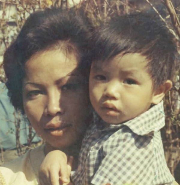 | Hai mẹ con chụp ảnh vào dịp Tết năm 1976, khi Thái Hòa hai tuổi. Anh sinh ngày 10/8/1974. |