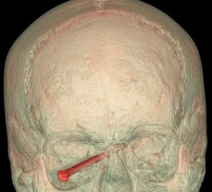Chiếc đinh 9cm may mắn không xuyên thủng nhãn cầu. |