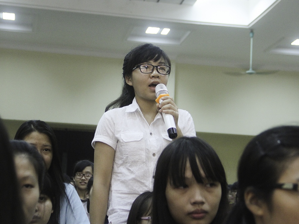 | Sinh viên đặt câu hỏi tới nhà tuyển dụng. |