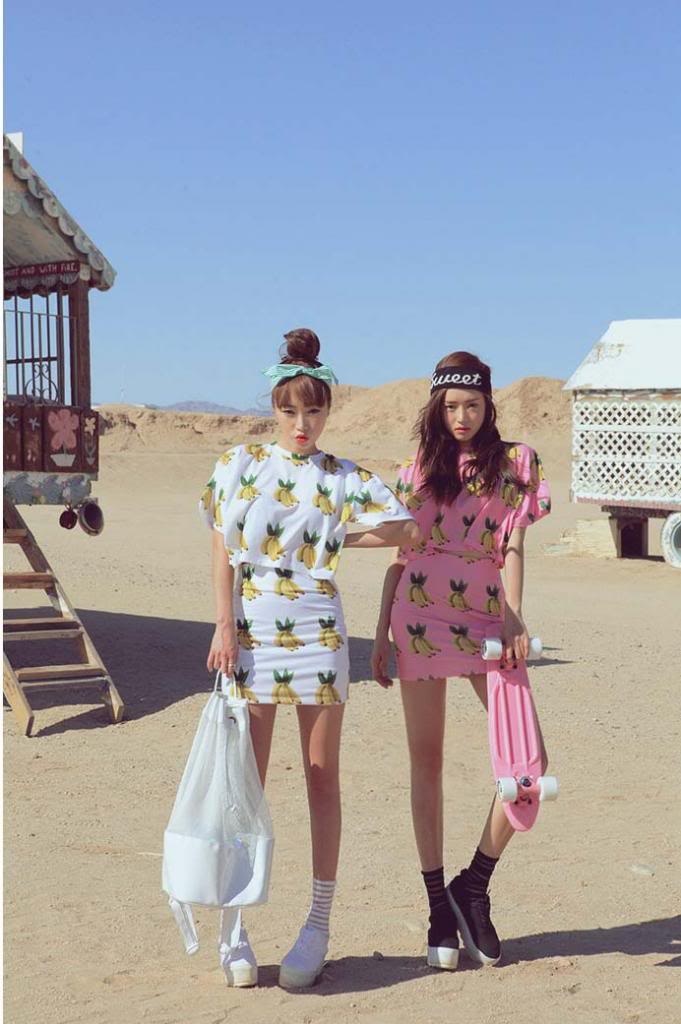 | Trang phục phối theo phong cách matchy - matchy: Họa tiết trái cây đã xuất hiện từ khá lâu nhưng phải tới thời gian gần đây nó mới chứng tỏ được độ nóng của mình khi đồng hành với tần suất cao cùng các bạn trẻ Việt Nam cũng như thế giới. Mix đồ với phong cách matchy - matchy khá đơn giản, bởi bản thân nó đã nổi bật nên chỉ cần đi kèm với giày bánh mì, tất lửng, headband màu sắc và một chiếc ba lô không quá cầu kì là có thể tạo một set đồ bắt mắt. |