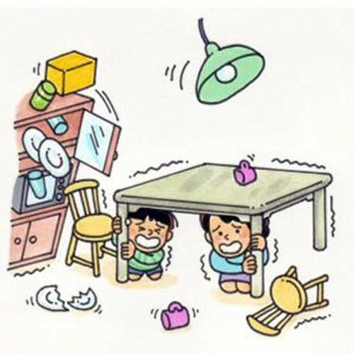 Ngay khi bạn cảm nhận được mặt đất đang rung lắc, hãy cố gắng giữ bình tĩnh và tìm nơi trú ẩn dưới gầm bàn hoặc đồ nội thất chắc chắn. Chúng ta cần ở yên dưới đó tới khi địa chấn kết thúc, lấy tay ôm chặt đầu và mặt để tránh bị thương vì dị vật. |
