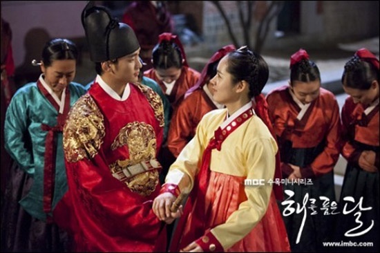 | Một kết cục viên mãn cho mối tình “có trời trăng chứng dám” của "Quốc vương Mặt Trời" Lee Hwon (Kim Soo Hyun) và nữ pháp sư Yeon Woo (Han Ga In) trong cổ trang The Moon Embracing The Sun. |