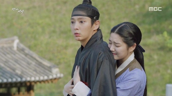 | Trong Scholar Who Walks The Night, Lee Jun Ki sửng sốt khi được người đẹp Lee Yoo Bi ôm. |