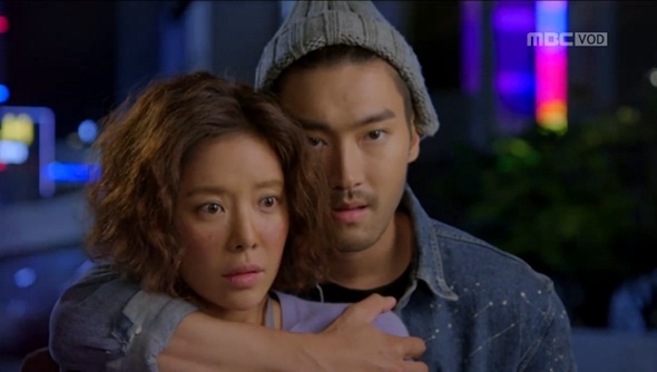 | Ngoài ra, cô nàng Kim Hye Jin còn được anh chàng Kim Shin Hyuk (Choi Si Won) ôm từ phía sau. |