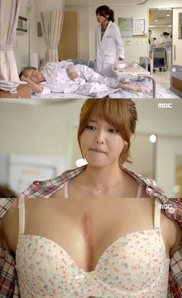 | Trong bộ phim Marrige, Not Dating phát sóng năm ngoái, thành viên Han Sunhwa của nhóm Secret đảm nhận một vai diễn cá tính. Nhân vật của cô không ngại phanh áo để người yêu cũ là bác sĩ phẫu thuật thẩm mỹ (do Yeon Woo Jin) khám ngực với vẻ mặt dửng dưng. |