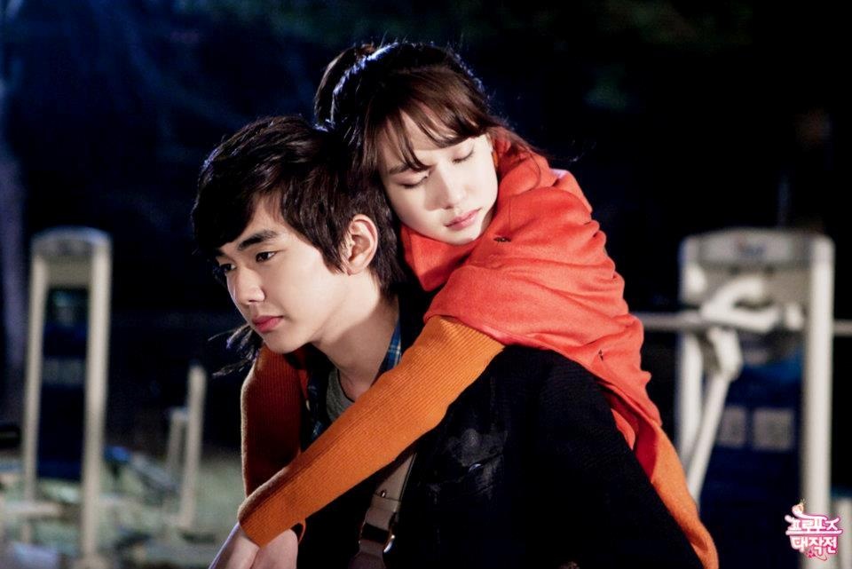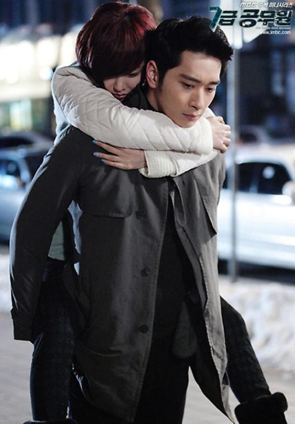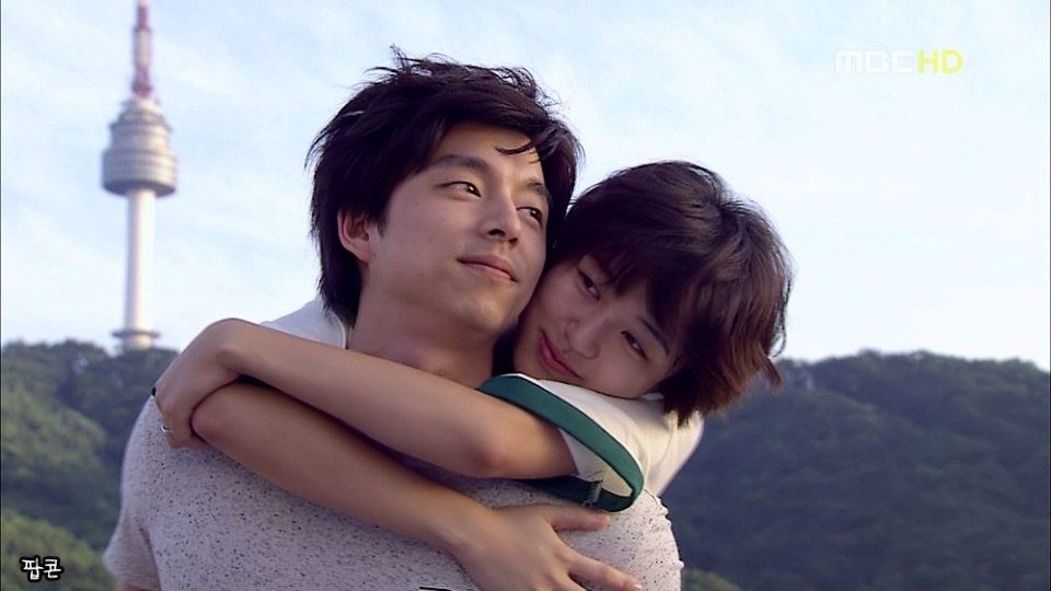 | Cảnh cõng tràn đầy niềm vui giữa Yoon Eun Hye – Gong Yoo trong Coffee Prince. |