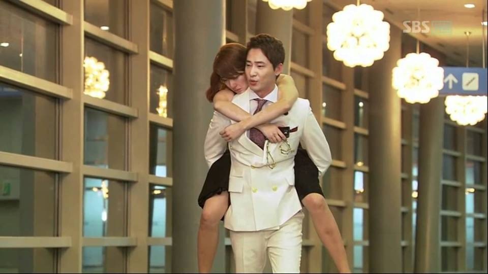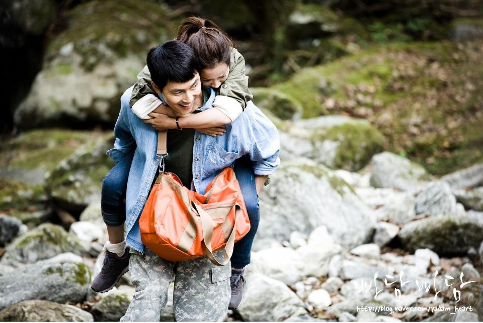 | Cảnh cõng đầy niềm vui hào hứng giữa Han Ji MIn – Jung Woo Sung trong Padam Padam. |