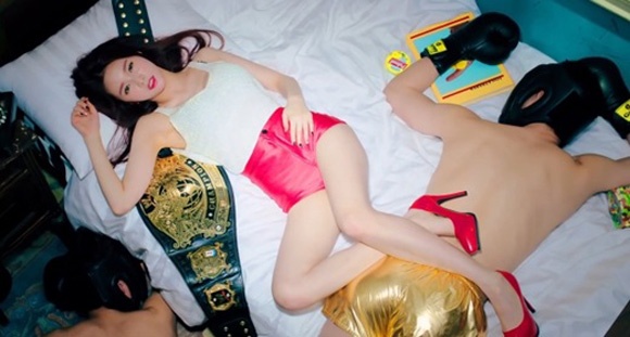 | Cảnh quay Sunmi nằm cạnh anh chàng lưng trần trong MV 24 Hours cũng thu hút sự chú ý của không ít khán giả. |